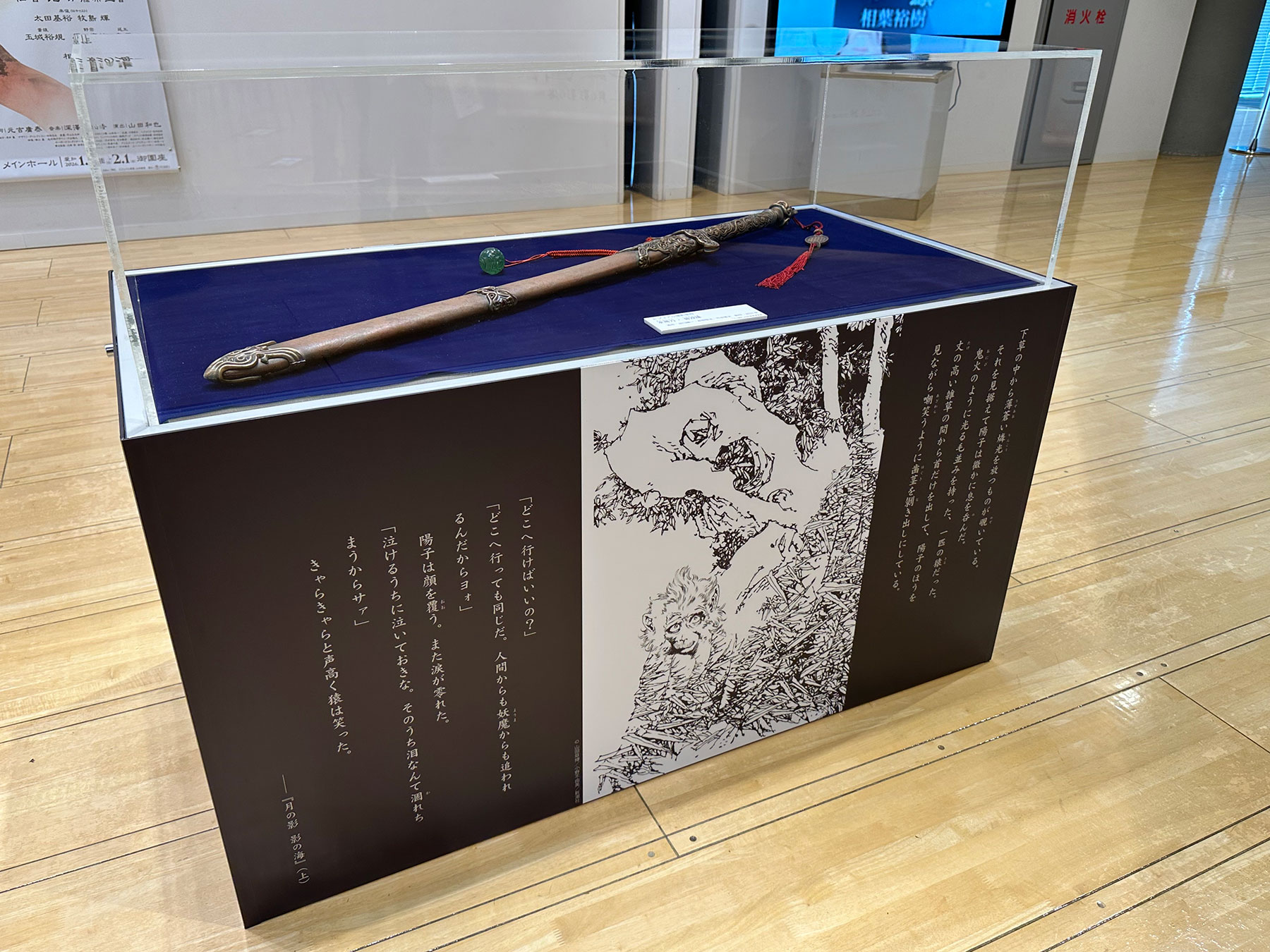 11月2日からは文学館宛に山田先生が描き下ろされた楽俊イラスト(撮影可!)と、前日11月1日に「十二国記の世界へ」と題した朗読会で、声優/久川綾さんが使用されてた書き込み入りの朗読用台本が、そして、11月5日からはトークショーでお披露目されたヨウコ制服が、あらたに展示されています。