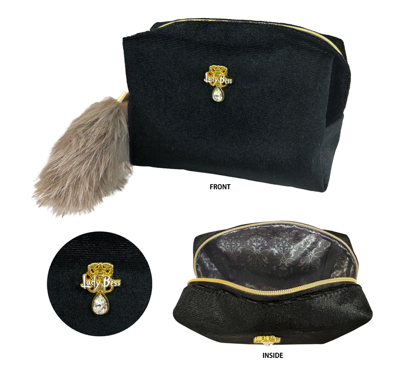 登場人物シモン・ルナールをイメージした、黒色のポーチ。狐のしっぽを思わせるファーが揺れるデザインに、裏地はこだわりの総柄。日常に物語の余韻を添えます。- [素材]ポリエステル+メタル