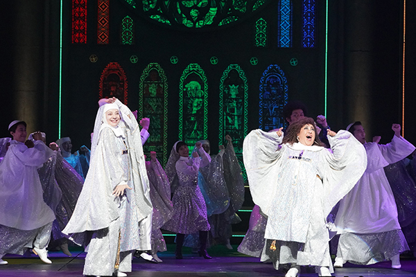 映画でウーピーが演じた歌手・デロリス役には、初演で帝劇初主演を果たし、圧倒的な歌唱力とコメディセンスで客席を爆笑の渦に巻き込み、同役で「第40回菊田一夫演劇賞」を受賞した森 公美子と、元宝塚男役トップスターで、抜群のスタイルと圧倒的なダンススキルを持つ彩風咲奈が、宝塚退団後の初ミュージカル作品として初参加、今回もユニークすぎる奇跡のWキャストが実現!デロリスの幼馴染で警察官のエディ役には、Wキャストとして、舞台映えするルックスとパワフルな歌声で魅せる石井一孝と、端正なルックスと抜群のコメディセンスを併せ持つ廣瀬友祐が続投。冷酷なギャングのボスでデロリスの元恋人・カーティス役には、近年、ミュージカル作品での活躍が目覚ましい松村雄基が新加入!その子分三人組には、TJ役に岡田亮輔、ジョーイ役に施 鐘泰(シ ジョンテ)、パブロ役には山崎大輝と、新規キャストが揃いました。教会を取り巻くメンバーは、続投のメアリー・ロバート役に梅田彩佳、メアリー・パトリック役の柳本奈都子、クラブシンガーのミッシェル役の河合篤子、そしてティナ役で家塚敦子が初参加。修道女たちをやさしく見守るオハラ神父役を引き続き演じる太川陽介とともに、メアリー・ラザールス役として新たに参加する保坂知寿が作品に彩を与えます。もちろん厳格な修道院長役は初演から演じている鳳 蘭が扮します。